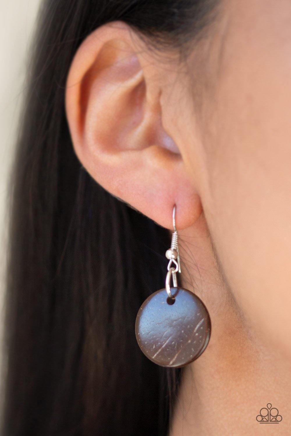 Brown wooden beads give way to rows of green and brown wooden discs, creating colorful layers for a summery look. Features a button-loop closure.