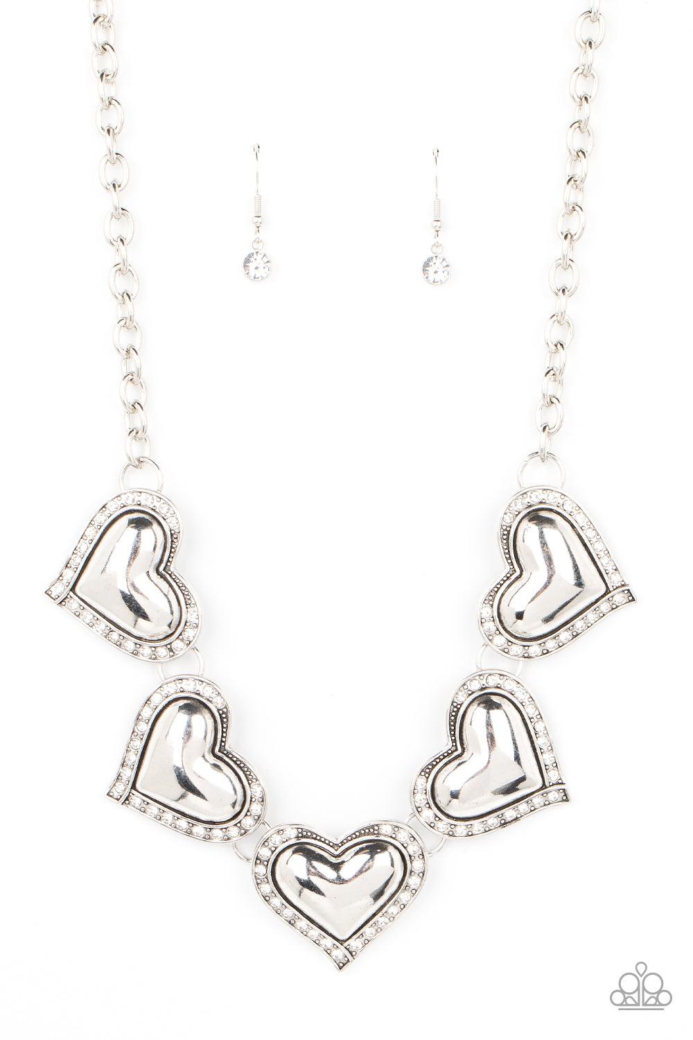 Kindred Hearts - White Hematite Rhinestone Oversized Heart Necklace - Demetra's Bling Boutique