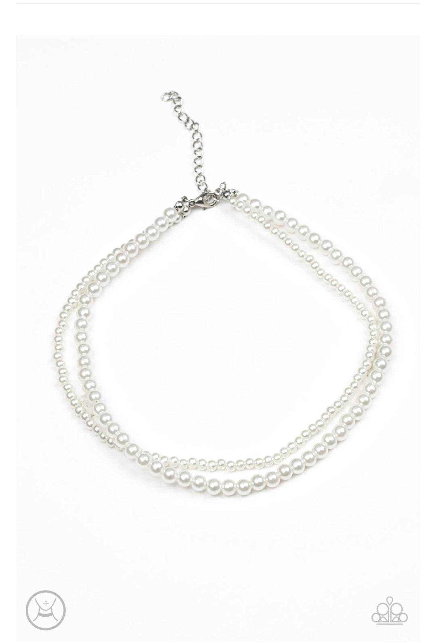 Varying in size, two strands of dainty white pearls wrap around the neck for a refined look. Features an adjustable clasp closure.